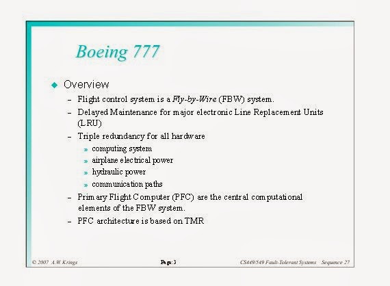 That is a LIE, as the Triple 7 was designed with 3 computers, 3 electrical systems, 3 hydraulics and 3 communication systems.