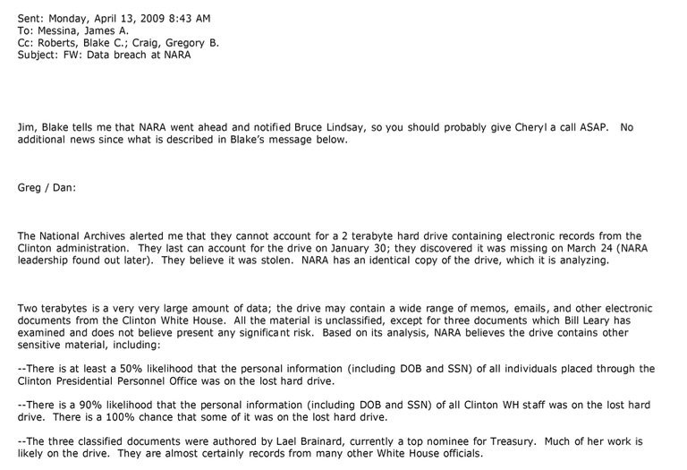 Two terrabyte drive with Clinton White House emails missing, presumed stolen from National Archives https://foia.state.gov/Search/Results.aspx?collection=Nov03_2016 …