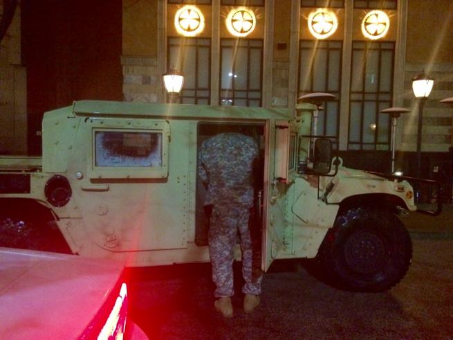 RT @CaseyNolen: .@Missouri_NG standing watch w/police in DT #Ferguson on S. Florissant where businesses still open.