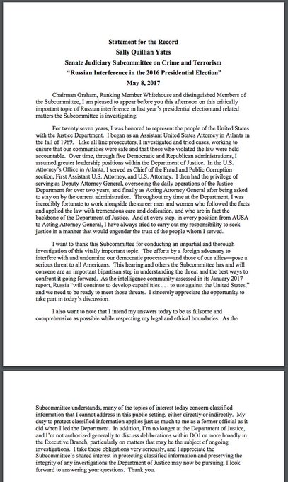 EmbeddedRead ex-AG Sally Yates’ fullopening statement ln.is/aIj2F by #CNN via @c0nvey