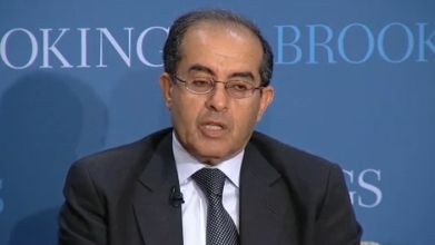 Photo: Libyan rebel leader Gibril Elqarfally stands before the Fortune 500-funded Brookings Institution openly declaring fealty to the globalist agenda of interdependency and subservience to a Wall Street-London international order.