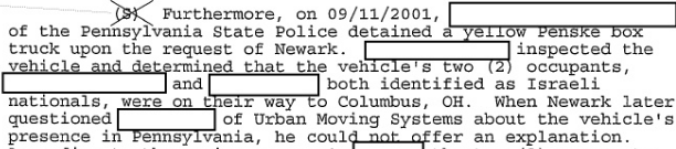 police report from the East Rutherford, NJ P.D. and these FBI documents on the 9-11-2001 Dancing Israelis incident (links are below). If any 9-11 researchers had seen them, they failed to make them available for public scrutiny. As a consequence, some individuals have concluded that the Dancing Israelis were an "urban legend", based only on researchers' opinions and a slew of seemingly disparate facts.