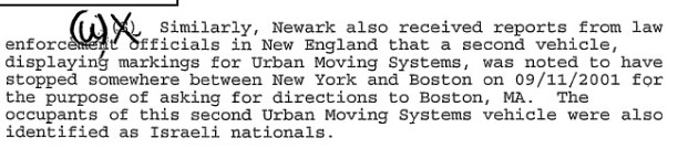 FBI documents on Urban Moving Systems and the Dancing Israelis (these notes will be updated as time permits) Regarding the Dancing Israelis connection to the Mossad, here's an article from the Jewish Daily Forward. For an interesting analysis of the information in these documents, please first see this brief intro, then the following article: The "Dancing Israelis" FBI Report - Debunked. A concise video of the same analysis is