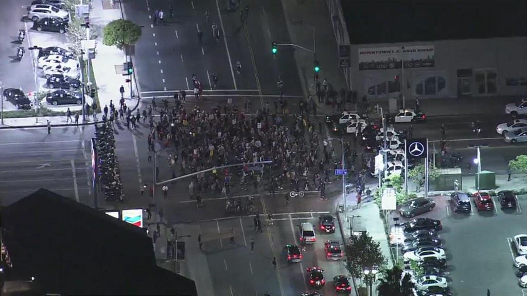 Protestors face to face w police at the #LA Police Department. #Ferguson